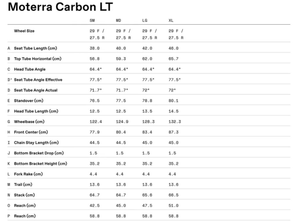 Rám | Moterra LT Carbon, 27.5" rear wheel, 29" front wheel, 165mm travel, Proportional Response Tuned Suspension, removable downtube battery, alloy skid plate, 55mm chainline, internal cable routing, 148x12mm thru-axle, UDH, 200mm native post mount brake, 1.5” – 1.8” tapered headtube | |